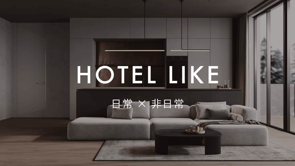 ホテルライクまるで洗練されたホテルの一室のような清潔感。全体的に家具や壁紙の色味を統一し繊細に作り上げられた空間で、日常なのに非日常という特別感を感じられるデザイン。