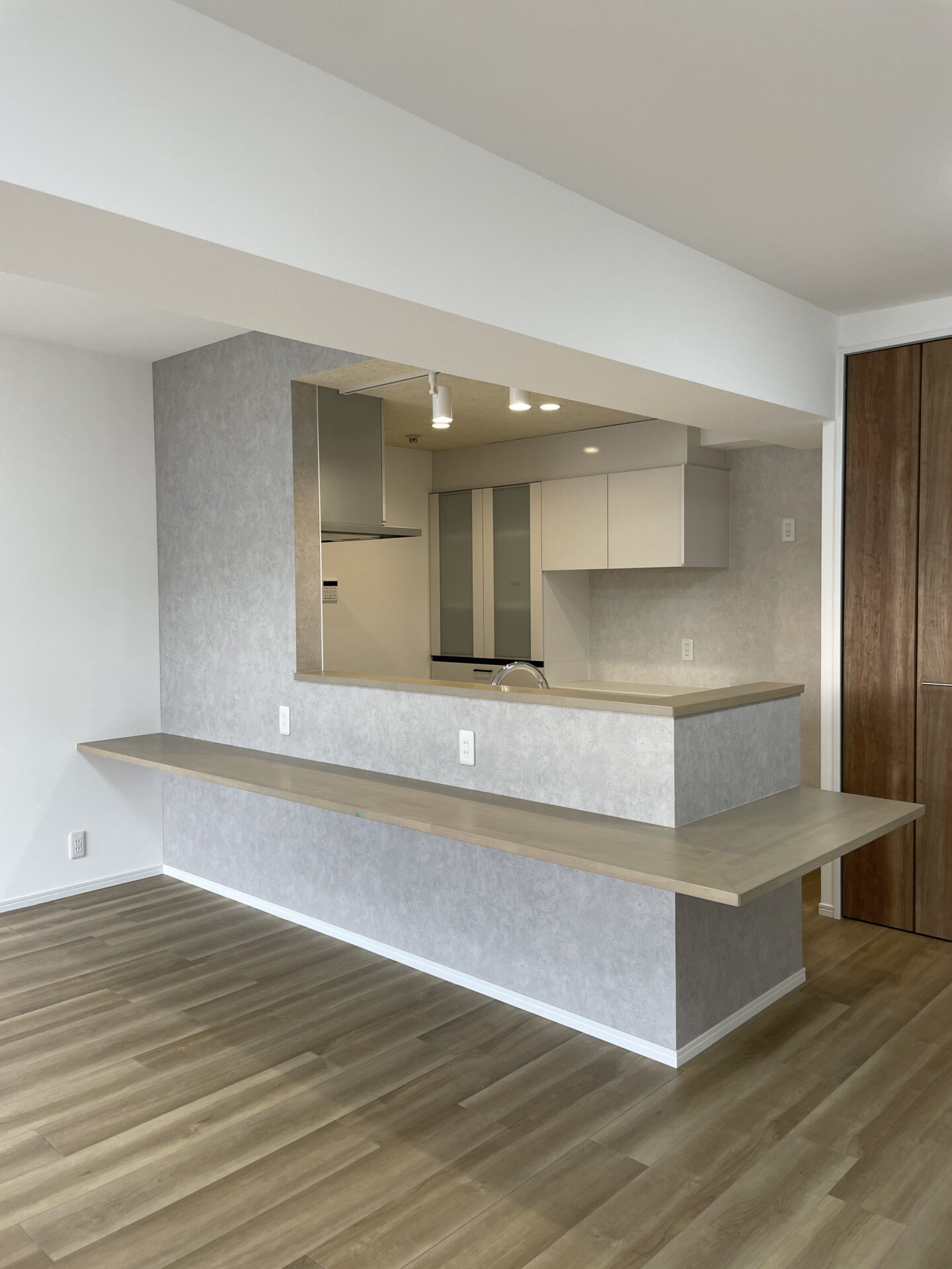 造作カウンターや、デスクワークができる空間も新設し、暮らしやすい空間に生まれ変わりました。