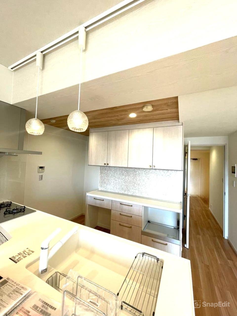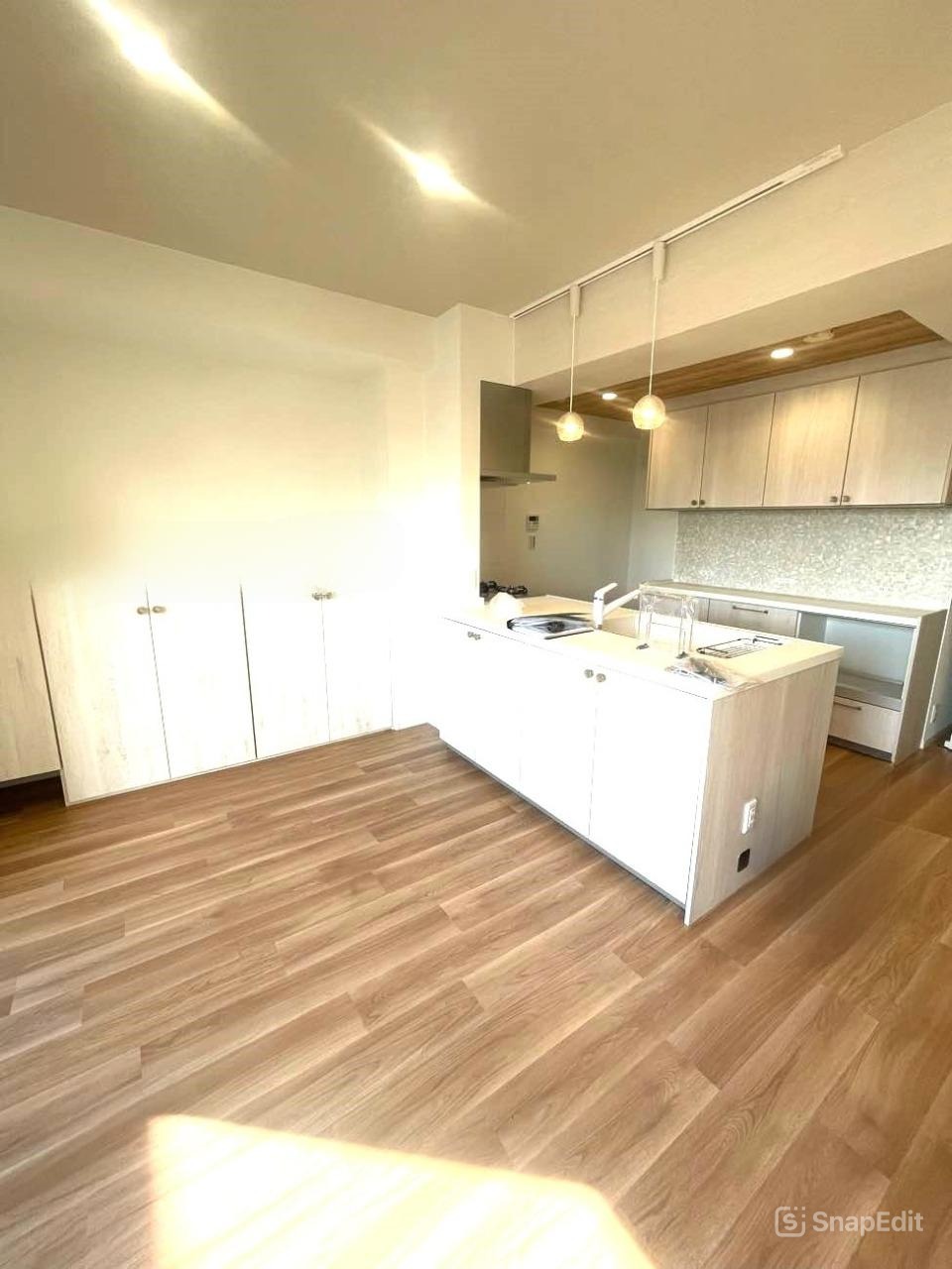 広々とした空間に、ペンダントライトが上質なアクセントを添え、おしゃれで心地よい雰囲気を演出しています。