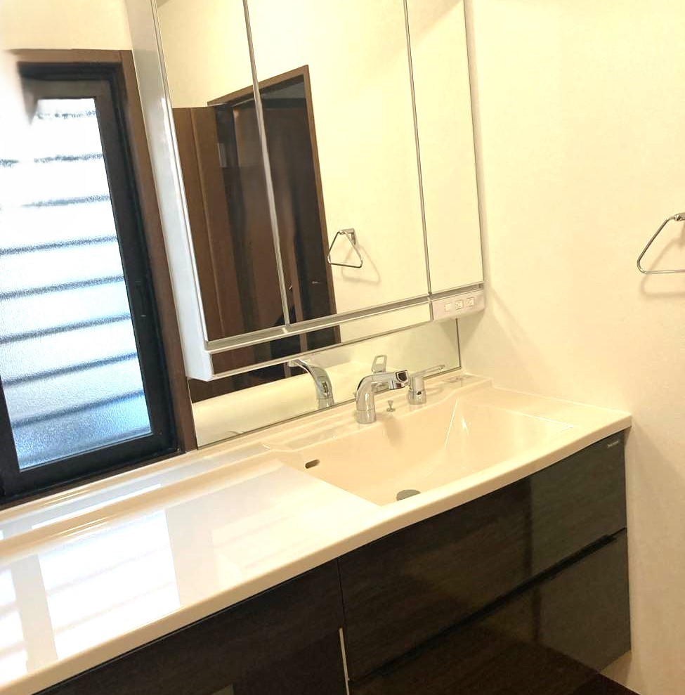 浴室は掃除がしやすい商品、洗面台は収納量がアップしカウンターは高級感があり毎日のメイクアップが楽しくなります。