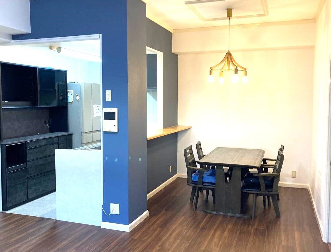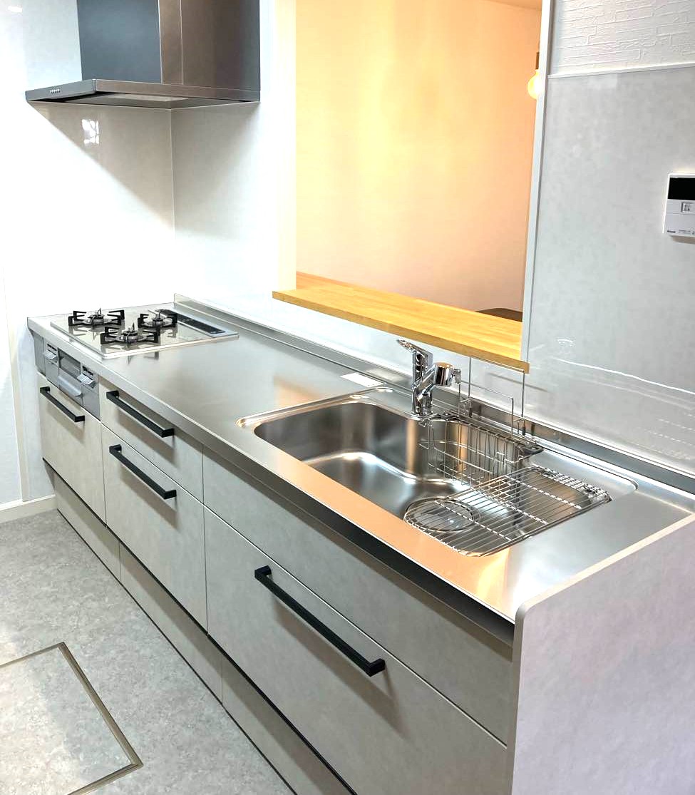 「キッチンが暗い」との事でしたので、キッチンカウンター面の壁と側面の壁を狭くして、明るさが増しました。
