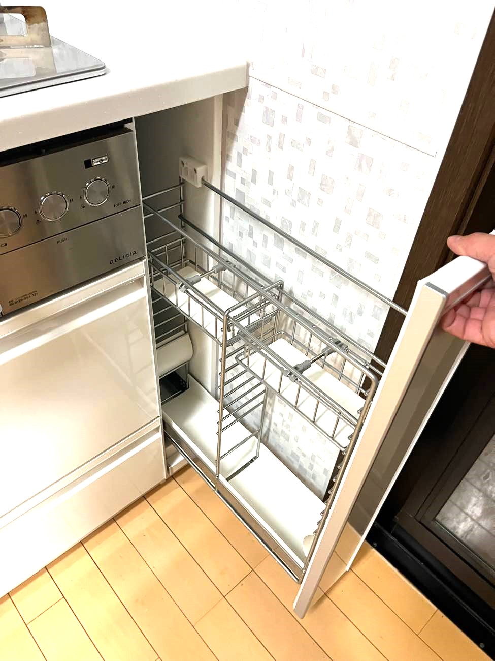 収納スペースも豊富なためワークトップが広くすっきりして調理が快適になります。